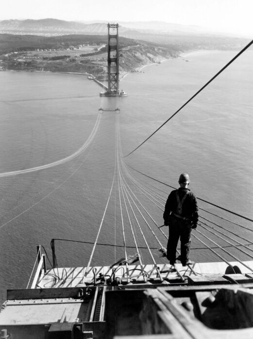 Мост - несомненно, гражданское строительство, для удобного перемещения через пролив. Однако он не остался без интереса со стороны военного департамента Штатов. В двадцатом веке, уже после того, как строительство моста завершилось, он приобрел важное стратегическое значение для всего залива Сан-Франциско. Сам район служил как основные морские ворота для флота США, и полное его согласование было достигнуто в 1930 году.