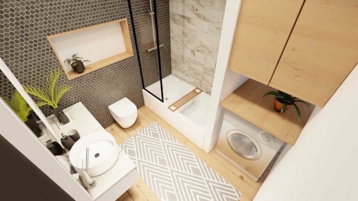 Стильная ванная комната порадует функциональностью и эстетикой. | Фото: newtrendhouses.com.