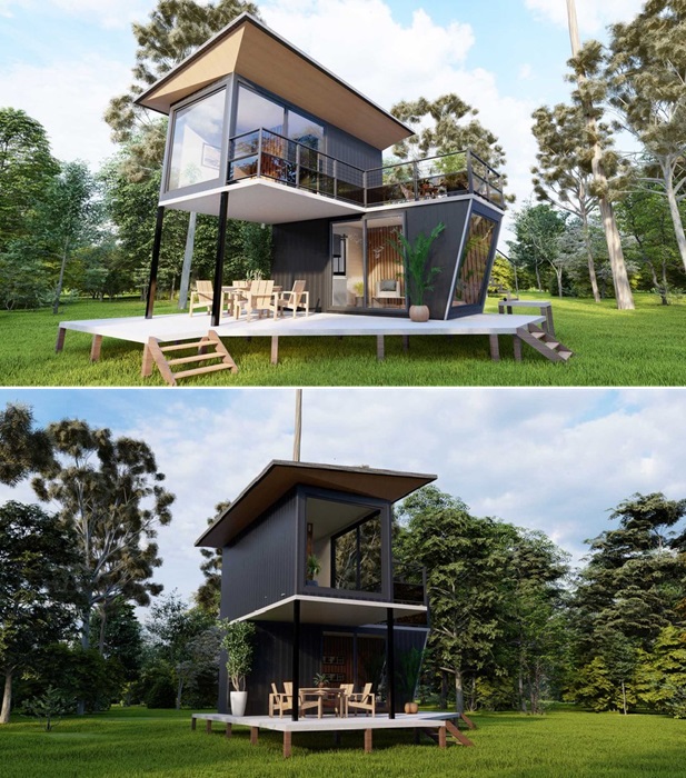 Сегодня тенденции устойчивого развития и инноваций продолжают оказывать чуть ли не главное влияние на дизайн жилищ, которые предпочитают строить те, кто решил, что пора менять свой образ жизни. В этом контексте идеи строительства частных домов, которые относятся к альтернативным технологиям, становятся настолько интересными и заманчивыми, что даже закоренелые консерваторы могут поддаться соблазну, построив поистине уникальный дом. И пусть он будет совсем небольшим, но если проявить изобретательность, как в случае с оригинальным контейнерным домиком, состоящим всего из двух морских контейнеров, то можно рассчитывать на идеальный баланс между экологичностью, практичностью, функциональностью и потрясающей эстетикой.