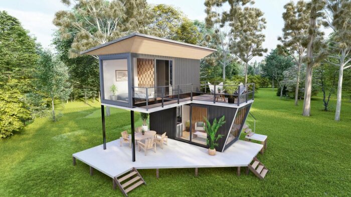 Всего два 20-футовых контейнера могут стать оригинальным летним домом.