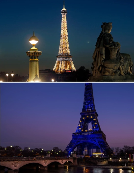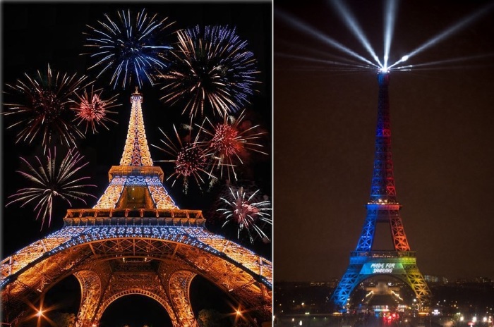 В праздничные дни Эйфелева башня становится еще более красочной и привлекательной.