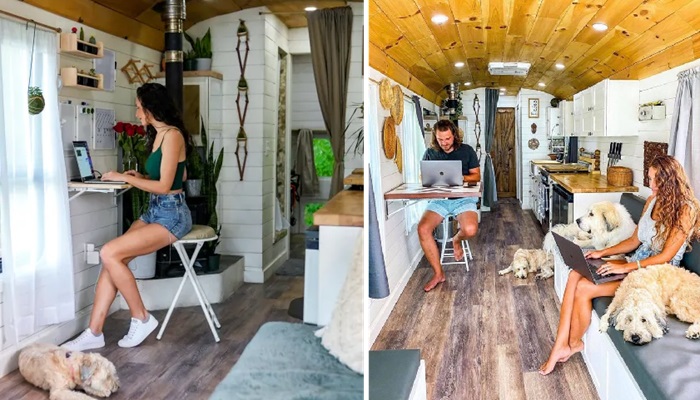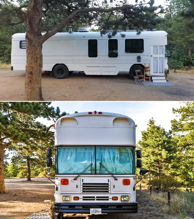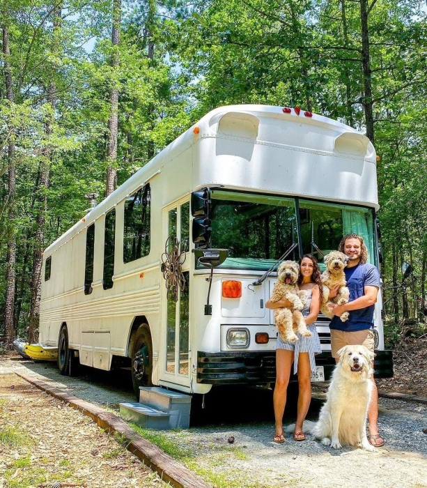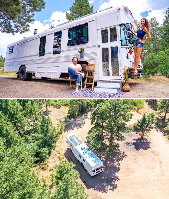 Чтобы иметь возможность путешествовать с комфортом и не привязываться к одному месту жительства, влюбленные решились на покупку школьного автобуса, с преобразованиями которого можно было поэкспериментировать. Поскольку молодые люди хотели иметь просторное жилище на колесах, они начали с того, что запланировали подъем крыши на целых полметра. Этот процесс занял много времени и потребовал значительных финансовых затрат, но результат того стоил. Когда их убежище было готово к заселению, они на себе ощутили преимущества такого расширения, пусть и состоялось оно лишь в высоту.