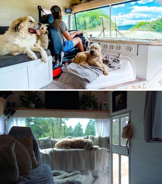 В заключение, авторы Novate.ru хотели бы отметить, что Николас и Франческа во время трансформации сделали все, чтобы им было комфортно жить даже в самых отдаленных уголках Соединенных Штатов, где поблизости нет ни населенных пунктов, ни туристических баз. При этом они побеспокоились о том, что бы их четвероногие друзья могли путешествовать и наслаждаться жизнью на природе вместе с ними. В продолжение темы предлагаем заглянуть в трансформированный автобус, в котором живет семья из 6 человек и их собака.