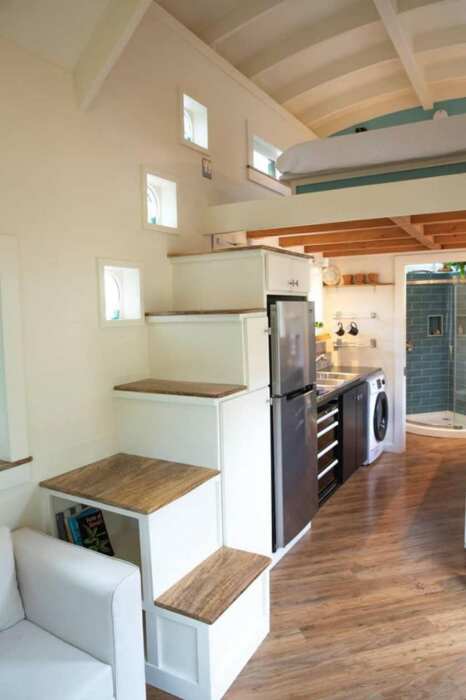 Одним из первых проектов семейной компании, получившей название Paradise Tiny Homes, стал голубой домик на колесах Oasis Tiny Home, привлекший внимание не только небесным цветом. Как признается Дэн, они стараются строить такие дома, в которых с удовольствием жили бы сами, и очаровательный «Оазис» не стал исключением. Он, как и все последующие модели, установлен на прицепе, что дает возможность не только жить в нем на постоянной основе, но и отправляться в дальние путешествия, не переживая о бронировании номеров и не озадачиваясь поиском крыши над головой, если в дорогу собрались спонтанно, да еще на выходных или в праздники. Кстати, мобильные модели прекрасно подходят для и эко-отелей, которые могут менять дислокацию в зависимости от времени года.