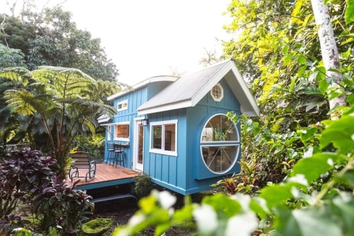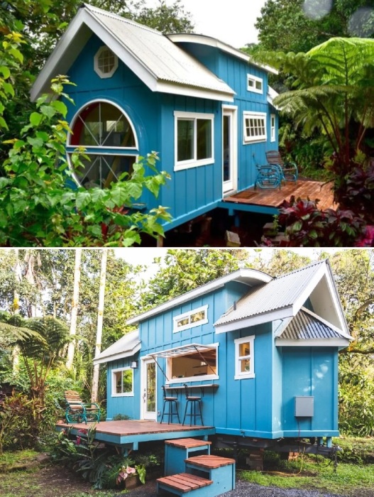 За последние годы «вселенная» крошечных домов настолько увеличилась, что не найти подходящий вариант или хотя бы вдохновляющий пример просто невозможно. Огромное разнообразие моделей, предлагающее прекрасные возможности для новых искателей острых ощущений, пополнилось очаровательным голубым домиком, появившимся среди роскошных тропических лесов Гавайских островов. Прекрасный образец запоминающейся эстетики и практичности стал «пробой пера» молодой строительной компании, которую решили основать брат с сестрой.