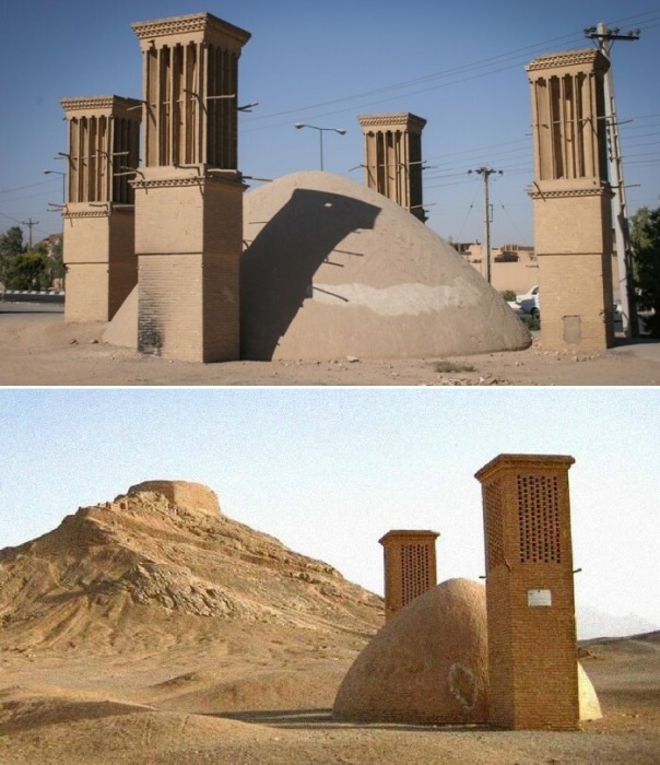 «Улавливатели ветра» стали дополнительным украшением древних хранилищ льда (яхчал Клар, Йезд). | Фото: irandestination.com.