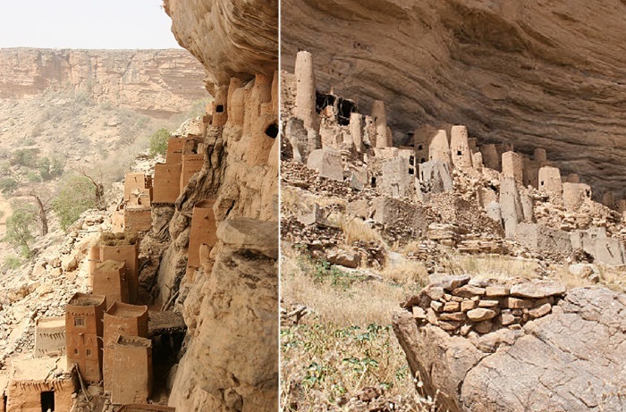 Жилища располагались на террасах и у подножия горной гряды Бандиагара. | Фото: heritagedaily.com.