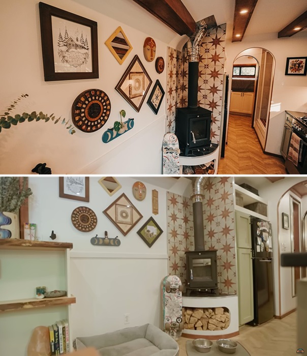 Интересный факт: Сидя на карантине дома, молодой человек увлекся разработкой дизайна будущего дома. Вспоминая свою поездку на остров Хольбокс, что у северного побережья Мексики, а именно виллу (где он останавливался) с ее арочными коридорами, открытыми балками и большими окнами, он решил повторить это в своем автобусе. Так, шаг за шагом на подробном эскизе стали появляться детали, имеющие свою историю. От изысканной плитки до произведений искусства, от арочных коридоров до кожаных диванов и выставочной стены — каждый элемент дизайна в автобусе Джонатана основан на приятных воспоминаниях, связанных с посещением тех или иных мест, оставивших неизгладимые впечатления.