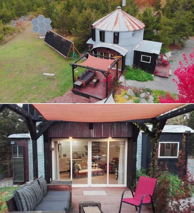 В заключение стоит упомянуть, что рядом с необычным домом, площадь которого едва дотягивает до 48 кв. м, супруги обустроили зону отдыха, спрятанную под навесом. Она стала прекрасным местом отдыха на выходных или в теплые вечера, когда собирается вся семья или Пэм и Дэвид начинают обсуждать новый проект, которым, кстати сказать, неугомонный дуэт они снова загорелся. Прожив 4 года в бывшем зернохранилище, они решили сдавать его в качестве гостевого домика, а вырученные деньги идут на реализацию другого проекта. В продолжение темы предлагаем заглянуть в силосную башню более скромного размера, которую выпускница Академии дизайна превратила в миниатюрный домик для отдыха на природе.