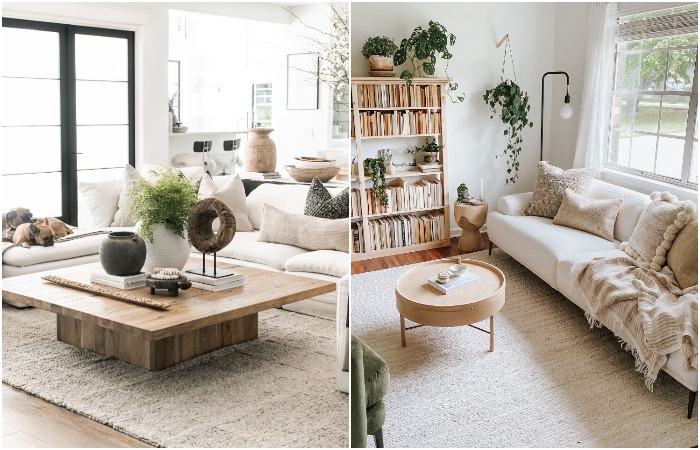 Чтобы создать интерьер в таком стиле, используйте ковры с геометрическими узорами, природную цветовую гамму (терракота, пыльный розовый, песочный, охра), керамические вазы, мебель из ротанга и терракотового бетона.