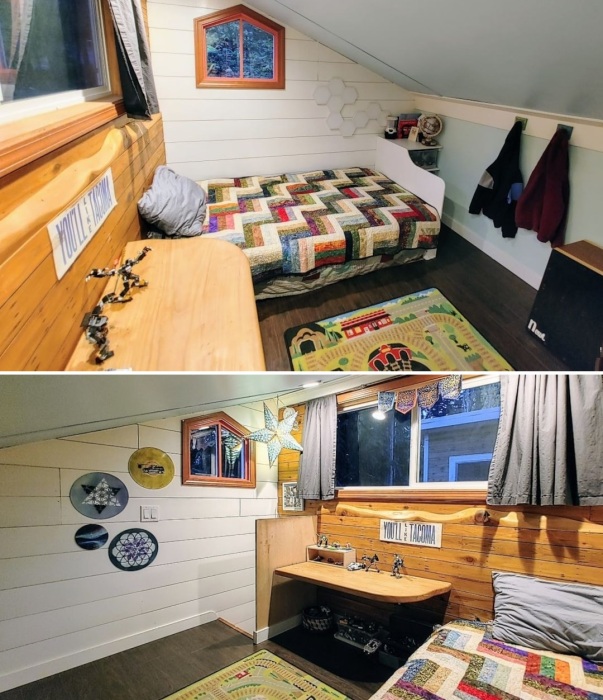 Родительская спальня обустроена на большом лофте. | Фото: tinyhomebuilders.com.