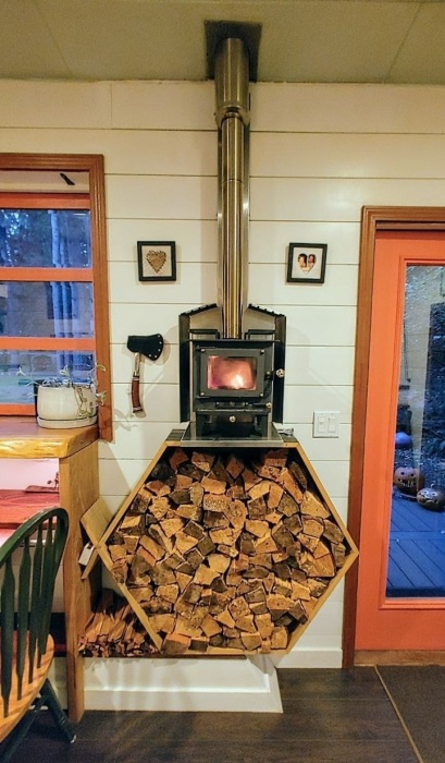 Дровяная печь с оригинальным хранилищем. | Фото: youtube.com.