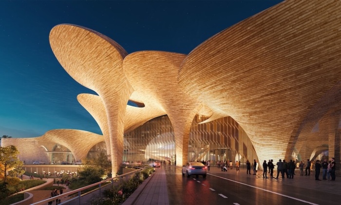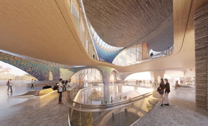 Многопрофильный Центр соединил в себе эстетику и технологии, выработанные узбекским народом (рендер). | Фото: dezeen.com.
