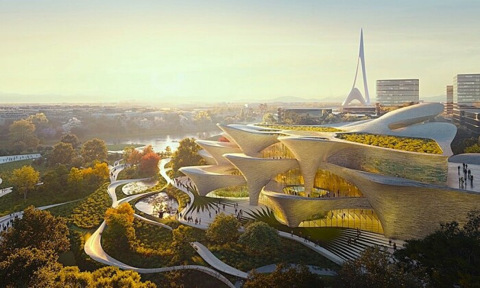 Полые арочные конструкции будут участвовать в эффективной системе вентиляции (концепт от ZHA). | Фото: 88designbox.com.
