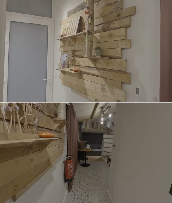 Элементы декора и небольшие полочки выполнены из обрезок досок.