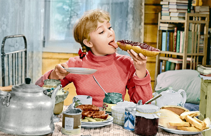 В Советском Союзе самым популярным продуктом для лечения и профилактики простуды и гриппа было малиновое варенье. Его обожали взрослые и дети. Варенье добавляли в чай, ели вприкуску, клали на хлеб и добавляли в молочные продукты. Малиновое варенье считалось настоящим деликатесом — его часто можно было увидеть в советской кинематографии. К примеру, в кино «Девчата», мультфильме «Малыш и Карлсон», «Маша и волшебное варенье». А вот в кукольном мультике «Малиновое варенье» 1983 года и вовсе раскрывается советский секрет лечения простуды. Главного героя вылечили малиновым вареньем.