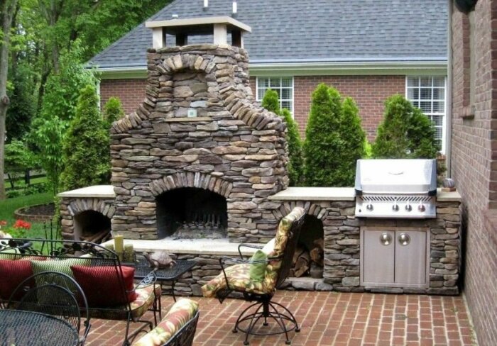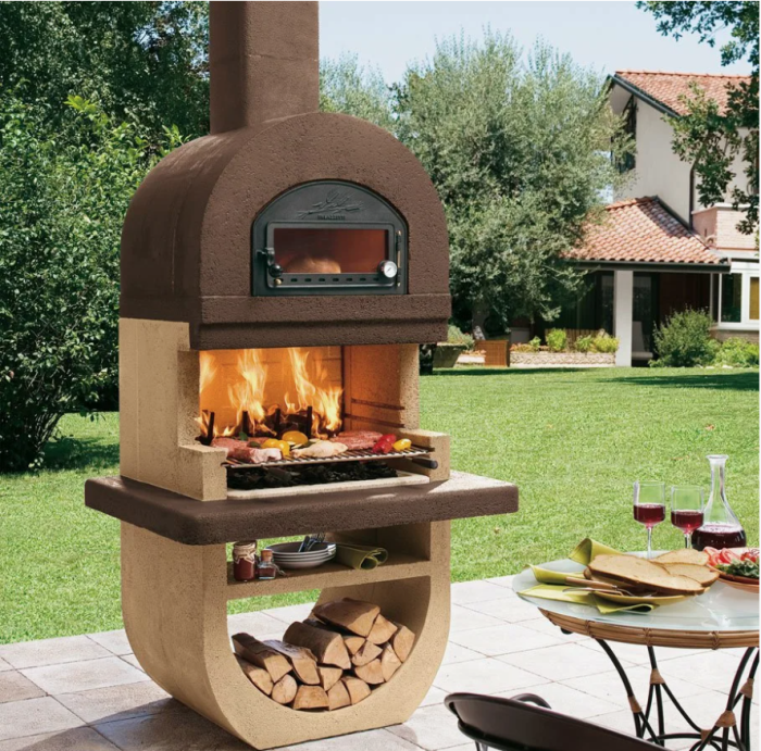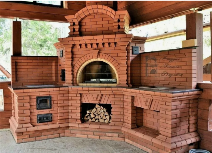 Для тех, кто хочет обладать всем и сразу существуют и печные комплексы. Это многофункциональные виды конструкции, имеющие разные виды жаровней. Это может быть печь, гриль, камин, варочная поверхность и, конечно, место для хранения дров и угля. На открытом воздухе обычно их и строят из-за размеров конструкции.