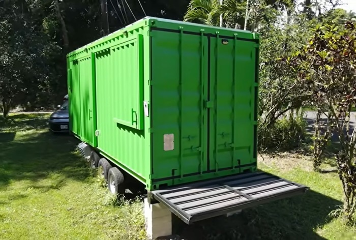 Габариты дома на колесах: The Green Box («Зеленая коробка»), именно так назвали очаровательное гавайское убежище разработчики, установлен на 7,5 метровый трехосный прицепной трейлер, ширина которого составляет 2,4 метра. С учетом габаритов самого контейнера, дом на колесах можно буксировать по любым автотрассам, не нарушая местные правила движения и парковки. А это большой плюс, когда не планируется стационарная установка на одном месте.