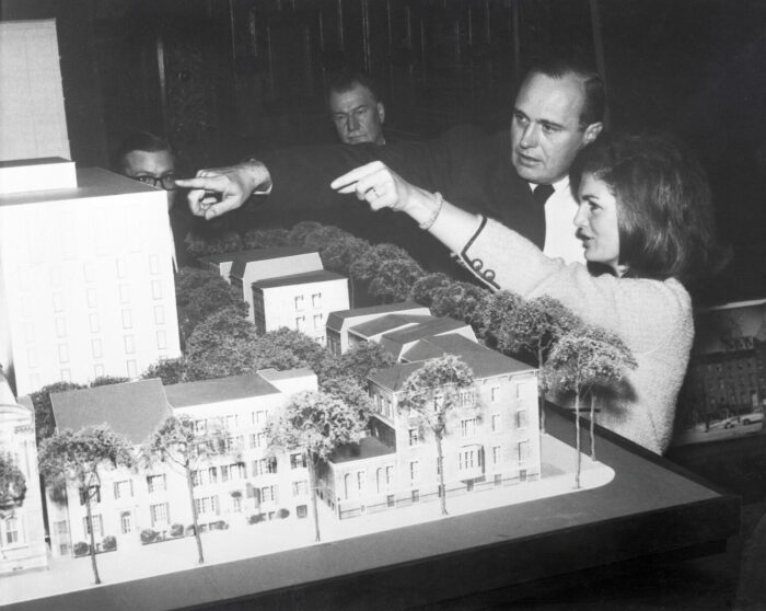 Как говорилось изначально, целью архитекторов, разрабатывающих план строительства небоскрёба, было совместить современный дизайн и не навредить старинной архитектуре вокруг. И благодаря столь инновационным чертам конструкции оно получило столь невероятную форму. Выглядит массивно и достаточно угрожающе. Модернистский стиль был популярен в годы строительства небоскрёба, потому таким образом, всё это было интерпретировано в грубом брутализме. В проекте был сделан акцент на необработанном бетоне, полностью лишённым каких-либо наружных элементов. Архитектор и создатель этого здания тоже заслуживает отдельного внимания. Здание изначально планировалось для особых целей, и кто-попало его проектировать, конечно же, не мог. Потому после долгих поисков эта важная задача была передана архитектурному бюро Jоhn Cаrl Wаrnecke & Assасiates. Компания и раньше проектировала здания для корпорации и иные государственные учреждения. В то время бюро руководил Джон Уорник.