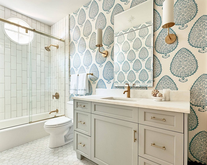 Прием 1: Оклейте ванную комнату обоями