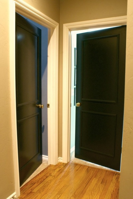 Чтобы добавить интерьеру акцента, сделать его более элегантным, достаточно лишь покрасить некоторые детали в контрастный цвет. В частности, речь идет о плинтусах и дверных откосах. Это будет выглядеть интересно, свежо и оригинально. Для усиления эффекта выберите глянцевую краску – на фоне матовых стен она будет смотреться более выигрышно.