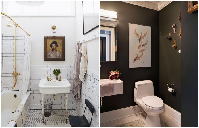 На первый взгляд может показаться, что ванна комната – не самое лучшее место для картины. Однако это мнение устарело. Правильно подобранное полотно не только задаст определенное настроение в интерьере, но также поддержит нужный мотив и цветовую гамму. Повесить картину можно как на покрашенную или оклеенную обоями стену, так и на плитку (и для этого вовсе не обязательно сверлить кафель). Следите за тем, чтобы не было перебора с яркими красками, иначе вам будет некомфортно находиться в ванной комнате, стены будут давить. А чтобы полотно со временем не испортились под воздействием влаги, покройте его влагостойким лаком или поместите в застекленную рамку.