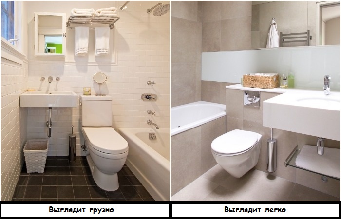 Спрячьте бачок в стену, чтобы он не перегружал ванную