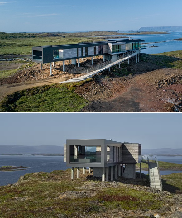 Резиденция Eagles Dream установлена на бетонных опорах (Исландия). | Фото: vecteezy.com.