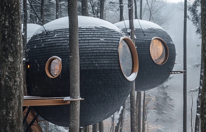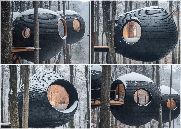 Домики на дереве из коллекции The Burl похожи на гнезда птиц.