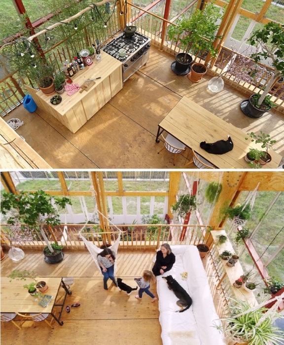 Общие жилые зоны обустроены в самой настоящей теплице (CHIBB).