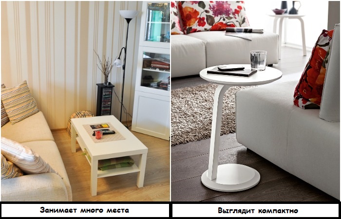Приставной столик занимает меньше места