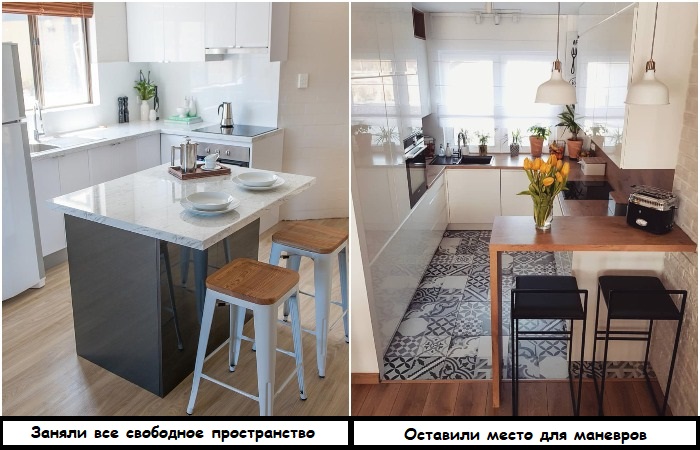 Наверняка вы часто обращали внимание на кухонный остров в интерьерных блогах, в фильмах или просто на картинках в интернете. Согласны, там он выглядит очень красиво, стильно и кажется, что такое решение прекрасно впишется в вашу квартиру. Увы, для типовой планировки такая мебель является не слишком удачным вариантом. Во-первых, для острова нужно выделить много места на кухне, во-вторых, вывести на него раковину или плиту достаточно проблематично, а в-третьих, из-за такого предмета интерьера не получится сделать широкие проходы в комнате, поэтому передвигаться, не за что не цепляясь, будет сложно.