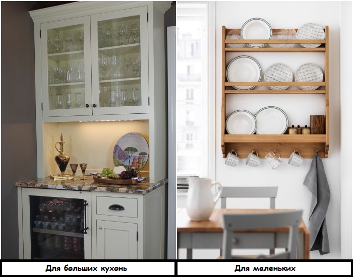 Раньше серванты были невероятно модными и стояли практически в каждой квартире. Хозяйки с любовью размещали в них свои сервизы и коллекции красивой посуды, чтобы, когда приходили гости, была возможность похвастаться своими сокровищами. Сейчас этот предмет интерьера не такой актуальный, а в маленькой квартире вообще лишний, так как занимает много места. Если у вас много красивой посуды, расставляйте ее на открытых полках на кухне – она станет стильным украшением интерьера, и при этом не будет перегружать комнату.