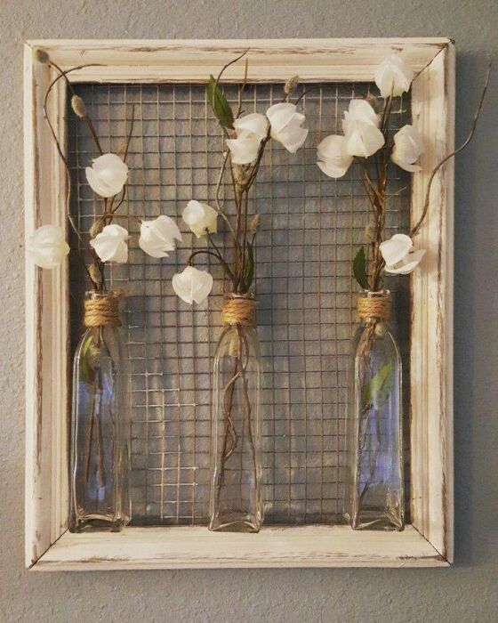Также яркой и креативной идеей является создание панно из старых рам. Такой замечательный элемент декора точно не оставит никого равнодушным. Тут будет нужна всего лишь одна оконная рама, а также и сами элементы, которые будут в дальнейшем прикреплены к панно — это фотографии, картинки, искусственные цветы, можно взять даже магниты или игрушки. А также краски и кисти. Самый простой способ создания такого панно - это прикрепление к задней стенке рамы куска картона, который соответствует её размеру. А в образовавшихся окошках можно создать композиции по темам, временам года или датам. Если на раме осталось стекло, то на нём можно порисовать, к тому же оно защитит композиции от пыли. Рамы тоже необходимо очистить, их можно не шлифовать, оставив немного в неряшливом виде, если он подходит под стиль интерьера. А вот крепить панно к стене нужно тщательно и в особенности это важно, если на нём присутствует стекло. Старые стеклянные рамы очень тяжёлые, и если она не маленькая, то нужны специальные крепежи. Зато по итогу получится очень памятный и милый уголок.