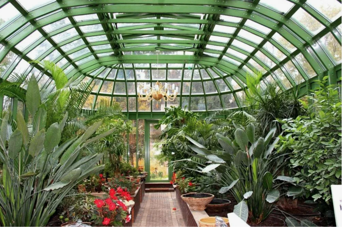 После того как зимний сад будет построен, можно заняться работами по его озеленению. Несмотря на большое количество стекла, освещение в саду также необходимо в вечернее время. Можно рассмотреть варианты с дополнительной регулировкой яркости. Лучше всего из мебели в зимний сад подойдут уютные диваны и кресла. Сами же растения тоже стоит выбирать очень тщательно, это могут быть как цитрусовые, так и разнообразные фикусы, пальмы, орхидей и иные тропические растения.