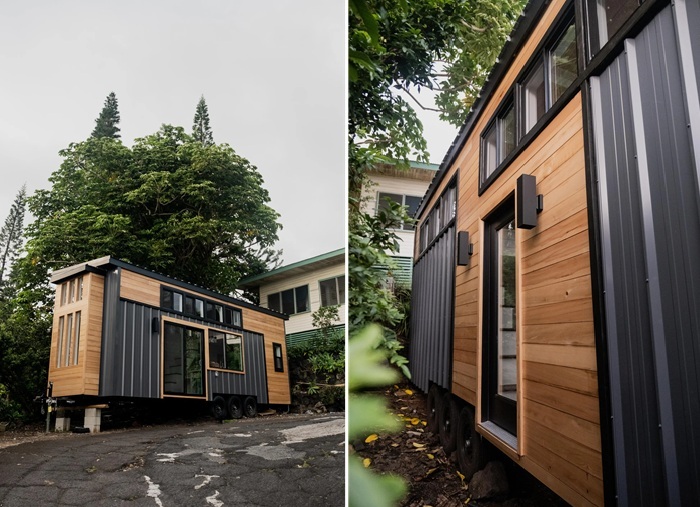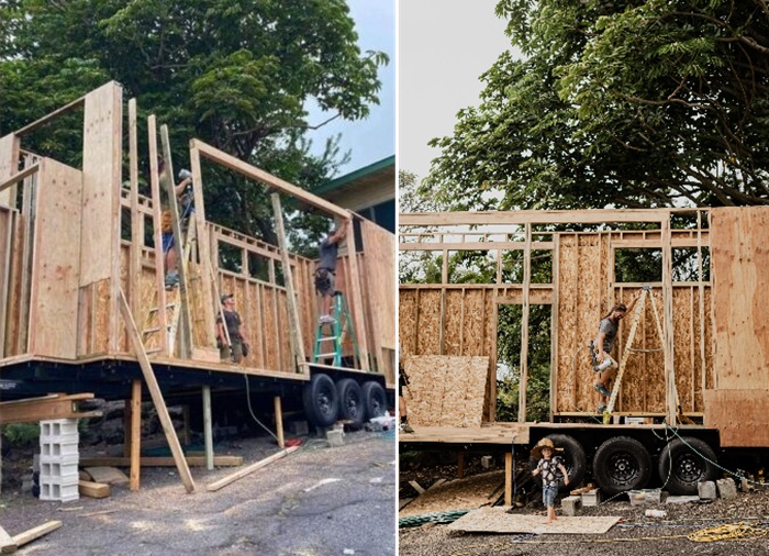 Интересный факт: Немыслимым образом Грег и зять смогли прибыть на помощь Тейлору, что поспособствовало ускорению процесса. Буквально за пару тройку дней на прицепе появилась основная конструкция дома и площадка, которую они называли черновой пол. Поскольку главным материалом стали дерево и металл, то и строительство ускорялось. Оставалось грамотно подгонять имеющиеся доски (преимущественно кедра), проложить слой утеплителя, который бы спасал жилище от перегрева, морозов же бояться не приходилось, ведь домик находится на Гавайях, где климат поистине божественный. И не менее скрупулезно облицевать все тем же натуральным деревом стены и потолок уже внутри домика.
