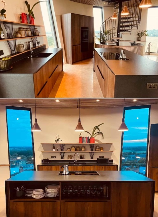 Понадобилось 4 года, прежде чем впечатляющая башня высотой 23 метра, диаметр которой от основания до вершины колеблется от 4,5 до 11,5 м, превратилась в роскошные 6-этажные апартаменты. Поскольку проект разрабатывал новоиспеченный хозяин, талантливый промышленный дизайнер, он сделал все, чтобы создать в Башне Тонвелл зону абсолютного комфорта. Единственное, что может вызывать неудобства, так это винтовая лестница, связывающая все уровни. Всего предусмотрено 100 ступеней, что немало, если бы планировалось организовать место для постоянного проживания. Для постояльцев же, останавливающихся на короткое время, такая особенность является больше приключением, нежели проблемой (если нет ограничений по здоровью, конечно же).