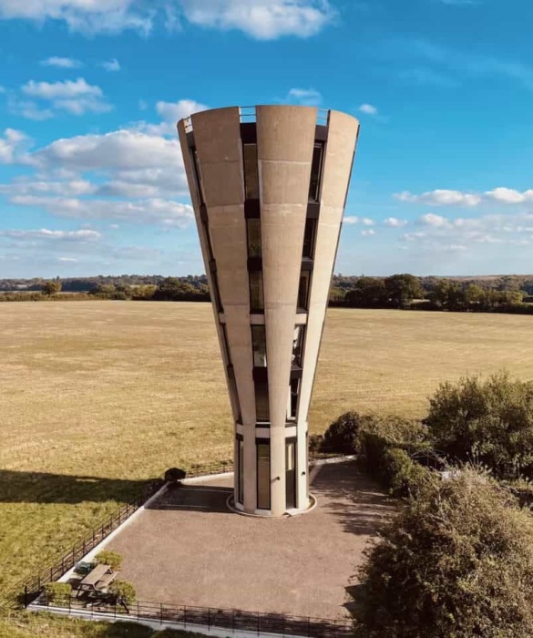 Преобразование исторических объектов, включая промышленные корпуса и инженерные сооружения, становиться модным и увлекательным занятием для тех, кто решил раскрыть свой творческий потенциал и имеет достаточно средств на очень сложные процессы реконструкции. Особенно востребованы объекты, имеющие нестандартные размеры и формы. Такие, как бруталистская водонапорная башня, построенная в 1960-х гг. в живописной деревне Тонвелл, расположенной в южной части Британских островов.