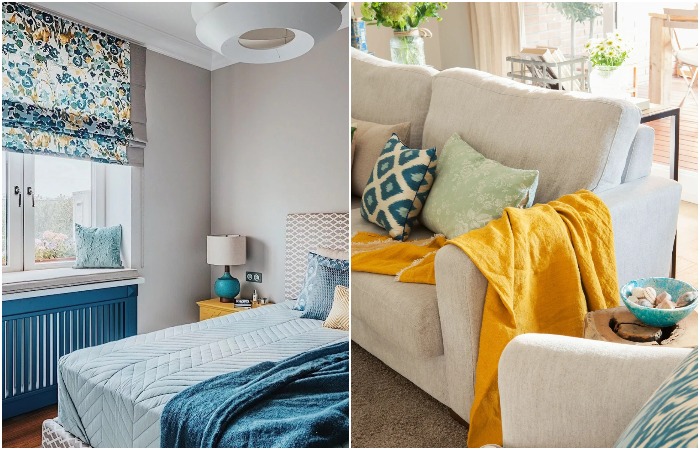 Многие недооценивают роль текстиля в интерьере, а ведь именно от него зависит характер и настроение комнаты. Шторы, ковры, декоративные подушки, постельное белье, пледы – все это придает яркости и ритма, а также делает обстановку визуально дороже. Текстиль можно менять каждый сезон, чтобы интерьер не надоедал и смотрелся по-новому, тем более, в магазинах и на маркетплейсах можно найти много бюджетных решений. Например, чтобы преобразить лаконичную гостиную, оформленную в базовых тонах, достаточно заменить нейтральный текстиль более ярким. И наоборот, чтобы сделать спальню более минималистичной, подберите шторы и постельное белье в одинаковых оттенках, но с разными фактурами. Получится лаконично, но нескучно.