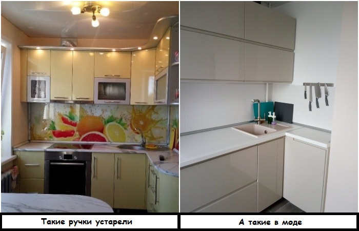 Когда будете выбирать мебель в магазине, обращайте внимание на столики, тумбы, комоды, диваны со скрытой или максимально незаметной фурнитурой. А при выборе кухни отдавайте предпочтение кухонным фасадам, оснащенным механизмом tip-on (открывание путем легкого нажатия), или скрытым ручкам.