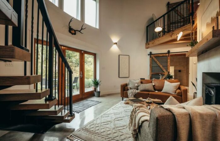 Изящная лестница, ведущая на мезонин (The Grain Binn, Мичиган). | Фото: vrbo.com.