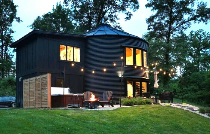 В живописной сельской местности Вандалии (штат Мичиган) появилось необычное место для загородного отдыха. Эклектичная резиденция, приветствующая тех, кто хочет обрести покой и воссоединение с собой, со своей семьей и природой, была построена из старого зернохранилища, о чем напоминает его форма, но никак не наполнение. Увлеченные владельцы превратили сельскохозяйственный объект в роскошную резиденцию, правда, это можно понять, только переступив порог необычного дома, расположенного в поместье в окружении живописного леса и рядом с ручьем.