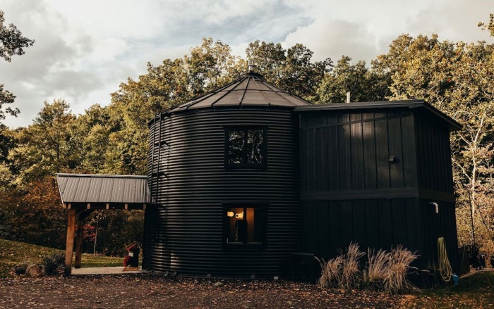 Черный фасад гостевого дома The Grain Binn привлекает внимание (Вандалия, США). | Фото: homecrux.com.