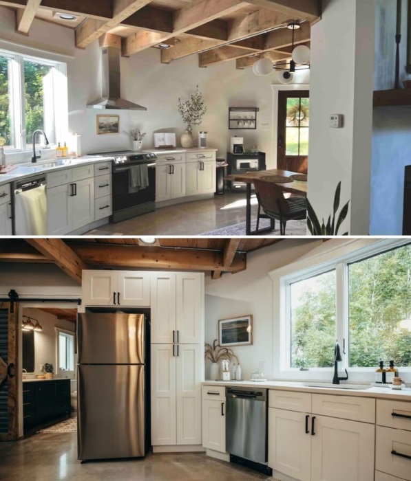 Открытая планировка сделала пространство более объемным (The Grain Binn, Вандалия). | Фото: creeksidecabinns.com.
