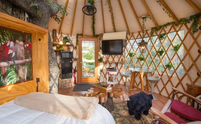 Примечательно: Самым неожиданным и комфортабельным убежищем все-таки является юрта, спрятанная между ветвей дубов и магнолий. Она предназначена только для взрослых, по той причине, что находится на территории фермы, где животные могут свободно передвигаться. Это вынужденная мера предосторожности, хотя многие хотели бы, чтобы и дети смогли насладиться незабываемыми приключениями, причем не только от пребывания в потрясающем домике на дереве. Мероприятия, запланированные дружелюбными владельцами, уж точно оставят неизгладимые впечатления у горожан любого возраста и статуса.
