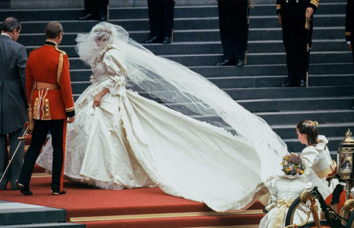 Длина платья леди Ди составляла 8 метров/ фото: yahoo.com Белое свадебное платье все чаще стали надевать на торжество. Пик популярности пришелся на 50-е года. Американская актриса Грейс Патриция Келли обнародовала публике снимки со свадьбы. Она позировала в белоснежном кружевном наряде, который был украшен жемчугом. Миллионы поклонниц были в восторге от ее женственного образа и мечтали повторить ее стиль. В 80-х годах белое платье приобрело особый статус — леди Диана Спенсер выходила замуж за принца Чарльза в «воздушном» платье бело-бежевого цвета.