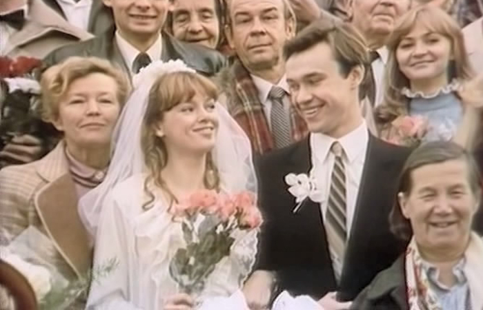 В СССР невесты надевали белые свадебные платья/ фото: kino-teatr.ru На Руси девушек выдавали замуж в красным атласных платьях, но в конце 19 века в моде произошли перевороты. Теперь невесты стали отдавать предпочтения светлым тонам. Белый цвет был самым подходящим. До 60-х годов свадебный наряд претерпевал множественные изменения. Сначала были в моде элегантные белые платья с глубоким вырезом, затем с расклешенным подолом, а после — длина стала уменьшаться. Девушки выбирали мини без лишних украшений. Лишь ближе к 70-м в свадебных платьях стал вырисовываться единый стиль — платье состояла из корсета и пышного подола.