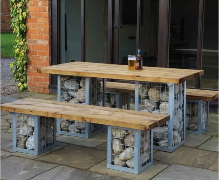 Садовая мебель это неотъемлемая часть пространства на загородном участке. Она дополняет его ландшафт и прекрасно подходит для того, чтобы проводить на свежем воздухе как можно больше времени, общаться с близкими и отдыхать. Такая мебель бывает разная и выполненная из разных материалов, она может быть переносной, так и полностью не разборной, которая переживает зиму на улице. Одна из интересных идей и направлений в дизайне — это уличная мебель с элементами габиона. Она максимально гармонично впишется в любой современный ландшафт и придаст уникальность участку.