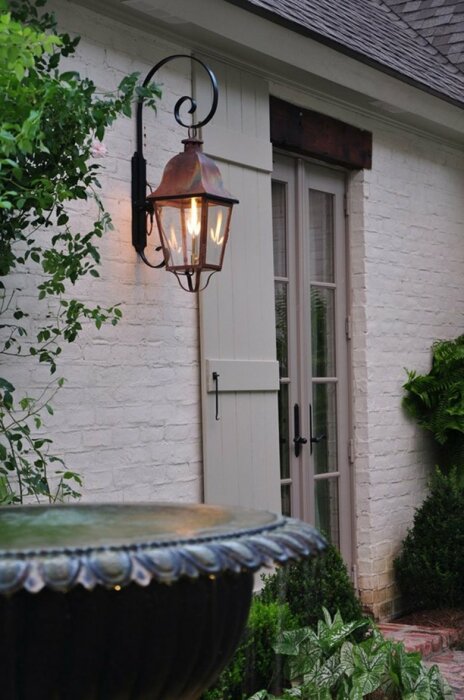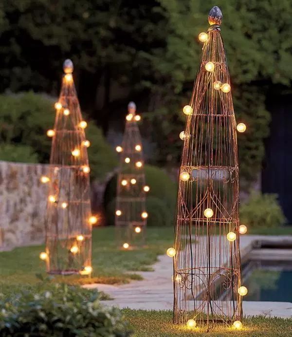 Есть также и несколько способов установки светильников. Это настенный монтаж, наземный, подвесной, встраиваемый. Настенный монтаж светильников — это освещение на веранде, на фасадах и у главных дверей. Такие светильники обеспечат равномерный свет и станут элементами декора. Они могут быть в виде бра или старинных фонарей. Подвесные используются в беседках или на террасах. Они должны создавать мягкий свет и могут быть выполнены в форме люстры и гирлянды. Для них также подойдут ветви деревьев в качестве опор. Наземные, напольные светильники устанавливается как вдоль дорожек, так и для создания акцентных зон в саду. Они монтируются на кронштейн, на столбы или вкапываются в землю. Встраиваемые светильники обычно имеют мягкий свет и маленький размер, они устанавливаются на одном уровне с землёй и светят как бы из неё. Отлично походят для ступеней или тротуаров.