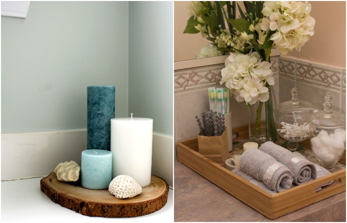 Завершающим штрихом в обновленном интерьере ванной комнаты станет декор. Что это может быть? Свечи, плетеные корзины, вазы с сухоцветами, искусственные или живые комнатные растения, картины и постеры в рамах, статуэтки, морские звезды и ракушки, оригинальные бутылочки с морской солью, подставки под бурлящие шары. Даже коврик для ног может стать красивым акцентом, если вы, конечно, подберете стильное изделие. Вот так просто получится сделать интерьер более стильным и уютным.
